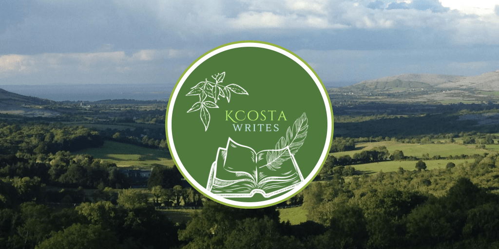 A landscape of mountains, fields, clouds, and vegetation in County Clare, Ireland